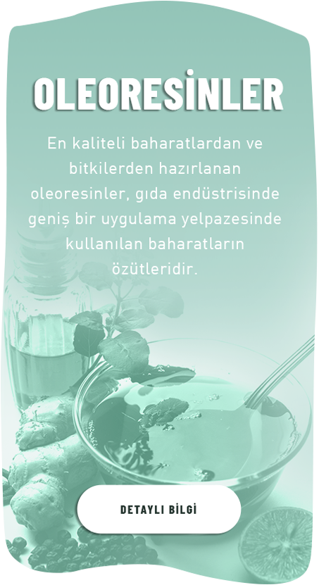Tanım: Muskat oleoresin, Myristica fragrans houtt’un kurutulmuş olgun tohumlarından elde edilen altın yağlı bir reçinedir. Kurutulmuş tohumlar ince öğütüldükten sonra organik çözücüler kullanılarak baharat özü elde edilir.